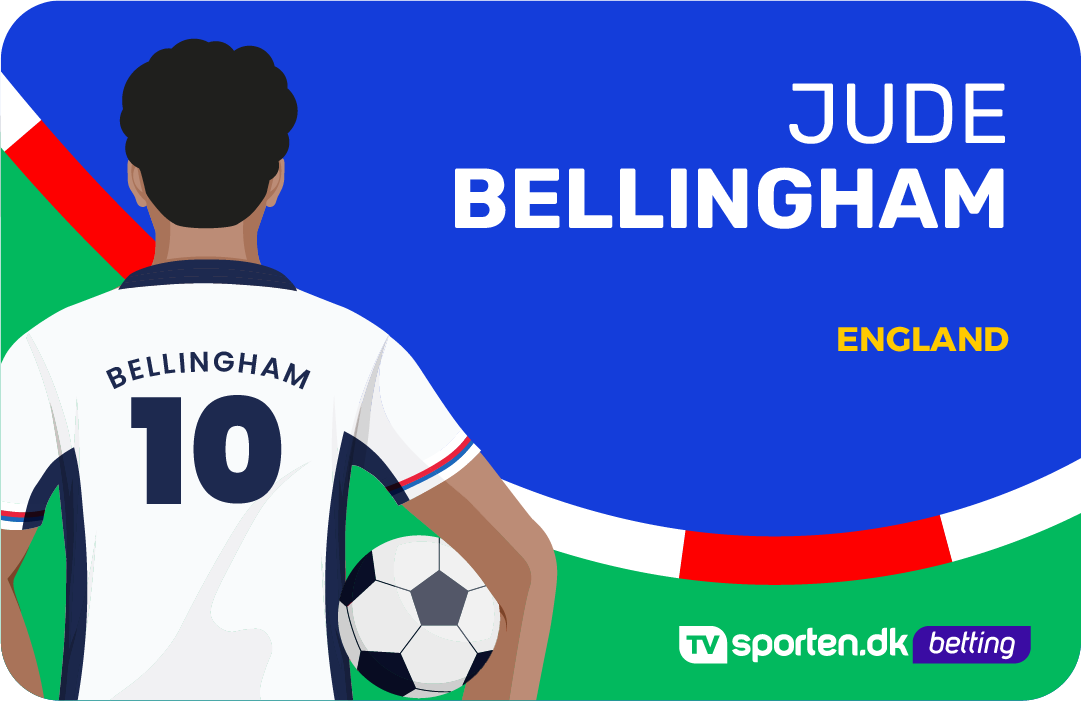 Midtbanespilleren med de bedste EM 2024 topscorer odds er Jude Bellingham, det succesfulde nyindkøb der tilsluttede sig Real Madrid før sæsonen. Fra sin midtbane-position har englænderen scoret mere end dobbelt så mange mål end i nogen anden sæson. Hvis han får en god start, er han absolut en kandidat til at blive bedste målscorer EM 2024.
