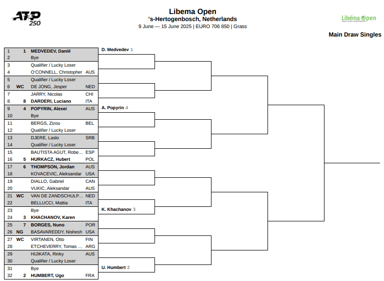 Det er sværere at finde rigtig spændende navne her, men selvfølgelig: Medvedev kan ikke lide græs, men han er en mere seriøs spiller nu end tidligere, og jeg tror, han vil gøre et seriøst forsøg på græsset denne sommer. Rigtig god lodtrækning også. Han burde stort set ikke kunne undgå semifinalen.